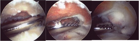 The procedure is performed under a combination of general and regional anaesthesia. An arthroscope is inserted into the joint after distending it with saline. The inside of the joint and subacromial bursa are examined. The undersurface of the acromion is exposed with the aid of a radiofrequency probe and a small amount of bone is removed with the aid of an arthroscopic shaver (motorised burr).