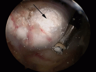 The procedure is performed under a combination of general and regional anaesthesia. An arthroscope is inserted into the joint and the inside of the joint and subacromial bursa are examined. The calcium deposit is usually identified on the upper surface of the tendon and its location is confirmed by inserting a needle. The tendon overlying the calcium is incised and the calcium is squeezed out and removed. Where a large deposit is removed the defect in the tendon may be repaired with sutures. Other procedures such as subacromial decompression or in some instances a capsular release may be performed, if indicated, at the same time.
